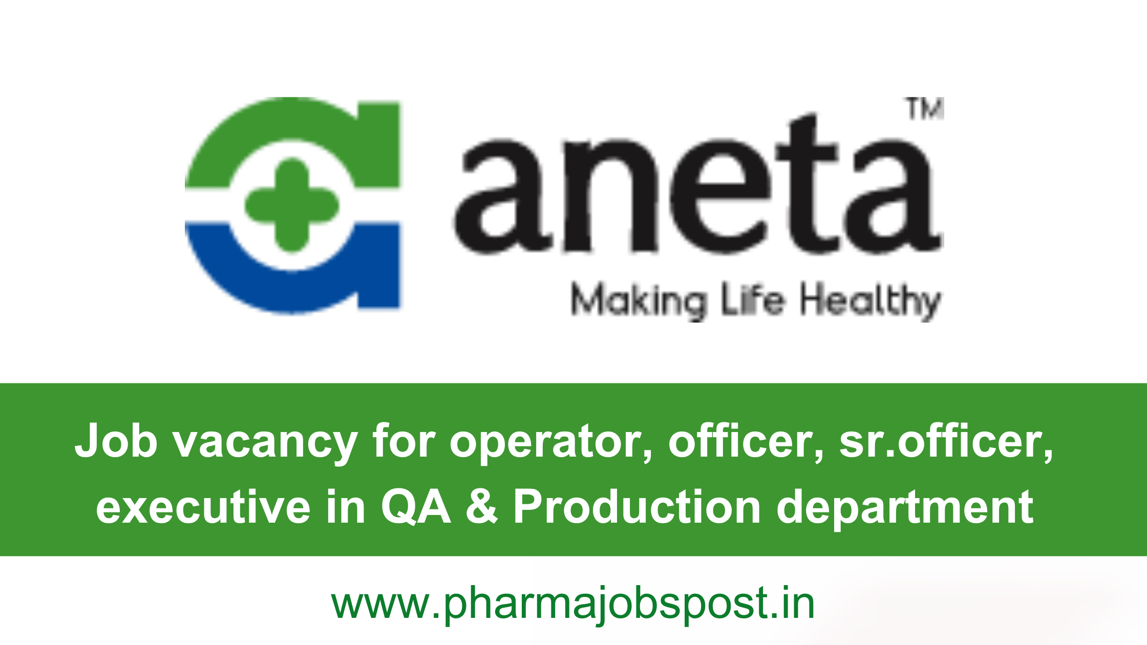 Aneta Pharmaceuticals job vacancy for operator, officer, sr.officer, executive in QA, Production @ Ahmedabad