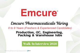 Emcure Pharmaceuticals Ltd. – Walk-In Interview 2026 | Production, QC, Engineering, Packing & Warehouse Jobs