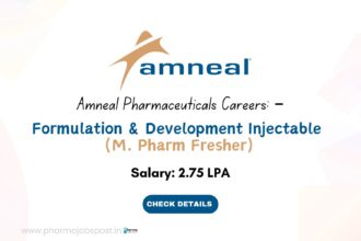 Amneal Pharmaceuticals Hiring M.Pharm Freshers – Formulation & Development (Injectable) | Ahmedabad