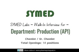 API Production Jobs at SYMED Labs | Walk-In for Chemist & Sr. Chemist