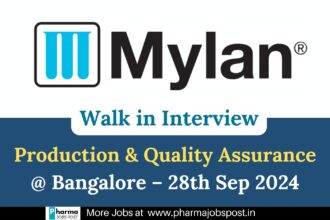 Mylan Laboratories: Walk-in Interviews for Injectable Production & QA in Bangalore – 28th Sep 2024