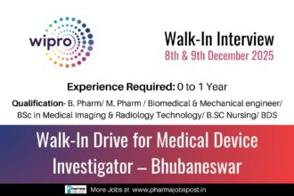 Wipro Limited Walk-In Drive for Medical Device Investigator – Bhubaneswar | 8th & 9th December 2025