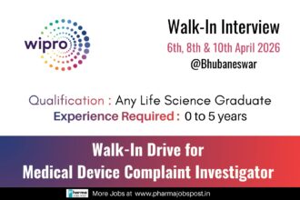 Medical Device Complaint Investigator Walk-In Drive 2026 | Bhubaneswar Pharma Jobs