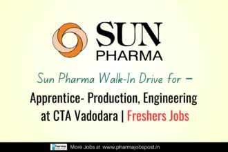 Sun Pharma Walk-In Drive for Apprentice at CTA Vadodara | Freshers Jobs