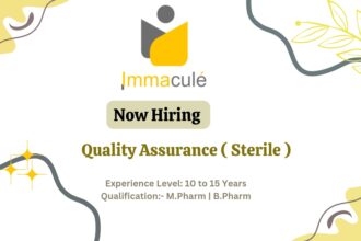 Immacule Lifesciences Hiring Senior Quality Assurance Professionals for Sterile Facility