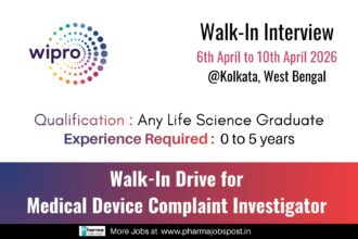 Wipro Walk-In Interview for Medical Device Complaint Investigator in Kolkata | Freshers & Experienced Eligible