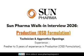 Sun Pharma Walk-in Interview 2026 | Production Jobs…