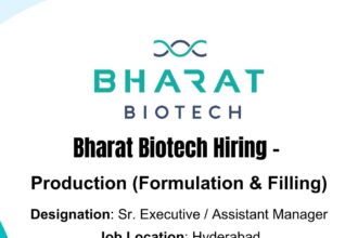 Bharat Biotech Hiring for Production (Formulation & Filling) – Sr. Executive / Assistant Manager | Hyderabad | B.Pharm / M.Pharm Jobs