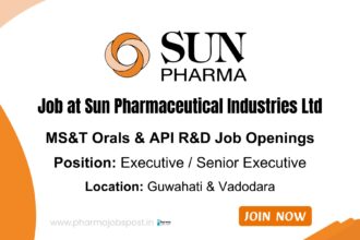 Sun Pharma Hiring | MS&T Orals & API R&D Job Openings in Guwahati & Vadodara