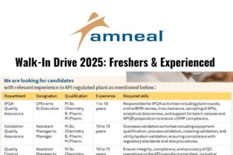 Amneal Pharmaceuticals Walk-In Interview 2025 at Dahej | QA, QC & Validation Jobs