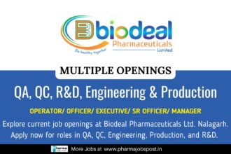 Biodeal Pharmaceuticals Nalagarh Hiring | Multiple Openings in QA, QC, R&D, Engineering & Production