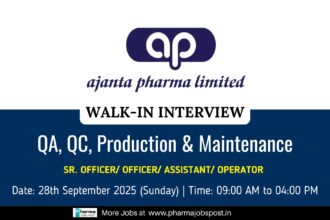 Ajanta Pharma Walk-In Interview in Indore | Hiring for QA, QC, Production & Maintenance – 28 Sept 2025