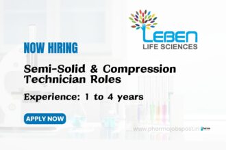Leben Life Sciences is Hiring | Semi-Solid & Compression Technician Roles