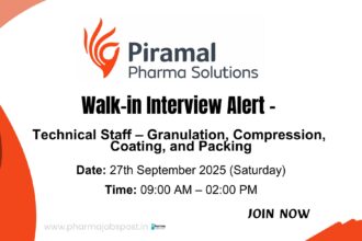 Piramal Pharma Limited Walk-In Interview in Pithampur Indore – 27th September 2025