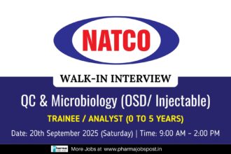 NATCO Pharma Walk-in Interview 2025 | QC & Microbiology Jobs in Hyderabad – 20th Sept