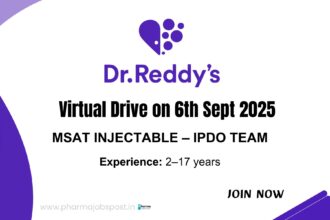 Dr. Reddy’s Hiring for MSAT Injectable (IPDO) | Virtual Drive on 6th Sept 2025