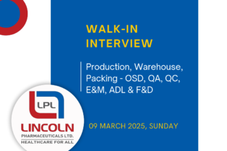 Walk-In Interview at Lincoln Pharmaceuticals on 09 March 2025, Sunday – Multiple Openings Across Departments