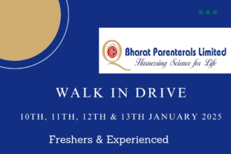 Bharat Parenterals Ltd Walk in Drive for freshers & Experienced Candidates on 10th, 11th, 12th & 13th January 2025
