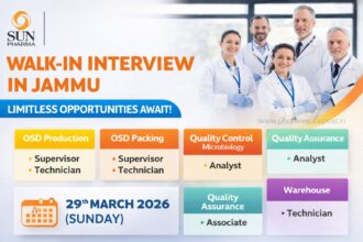 Sun Pharma Walk-In Interview 2026 Jammu | QA, QC, Production & Warehouse Jobs