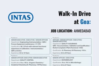 Intas Pharma Walk-In Drive at Goa – Quality Assurance, QC & Manufacturing