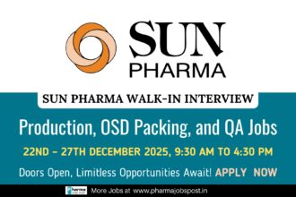 Sun Pharma Walk-In Interview for Production & Quality Roles – Jammu | 22–27 December 2025