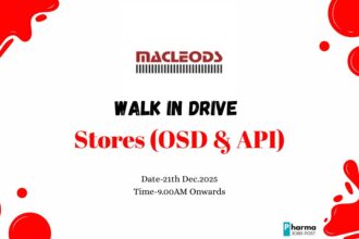 Macleods Pharmaceuticals Walk-In Drive 2025 | Stores (OSD & API) Jobs in Indore | Executive & Officer Roles