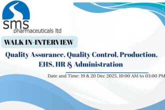 SMS Pharmaceuticals Limited Walk-In Interviews for QA, QC, EHS, HR/Admin Roles in Hyderabad (2025)