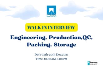 NAPROD LIFE SCIENCES Walk-in Interview 2025 | Engineering, QC, Production Jobs