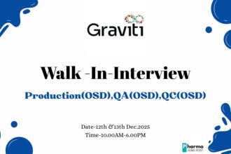 Walk-In Interview for Pharma Jobs | Production, QC, QA Openings at Graviti Pharma, Hyderabad