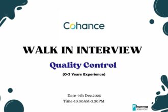 Walk-in Interview: Quality Control Jobs (Fresher/Exp) at Cohance Lifesciences, Ankleshwar – B.Sc/M.Sc Chemistry