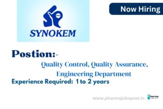 Synokem Lifesciences Pvt Ltd Announces Multiple Job Openings in QC, QA, and Engineering Departments