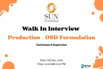 Sun Pharma Walk-In Interview 2025: OSD/Production Roles for Experienced B.Pharma & ITI/Diploma Candidates