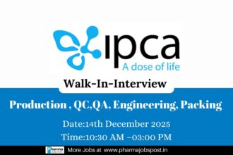 IPCA Laboratories Walk-In Interview: Production, Packing, QC, QA, Engineering Jobs (2-5 Yrs Exp)