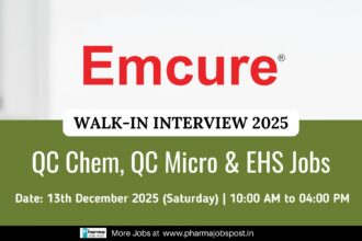 Emcure Pharmaceuticals Walk-In Interview 2025 for QC, Micro & EHS Roles – Surendranagar