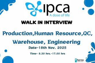 Ipca Laboratories Walk-in Interview 2025: Production, QC, HR & Engineering Jobs in Dewas (MP)