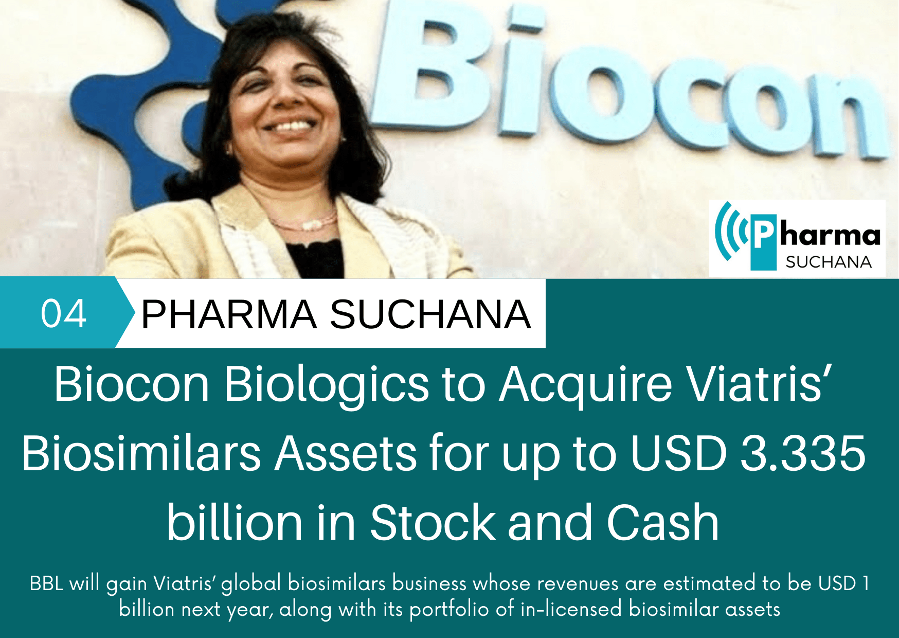 Biocon Biologics to Acquire Viatris’ Biosimilars Assets for up to USD 3.335 billion in Stock and Cash