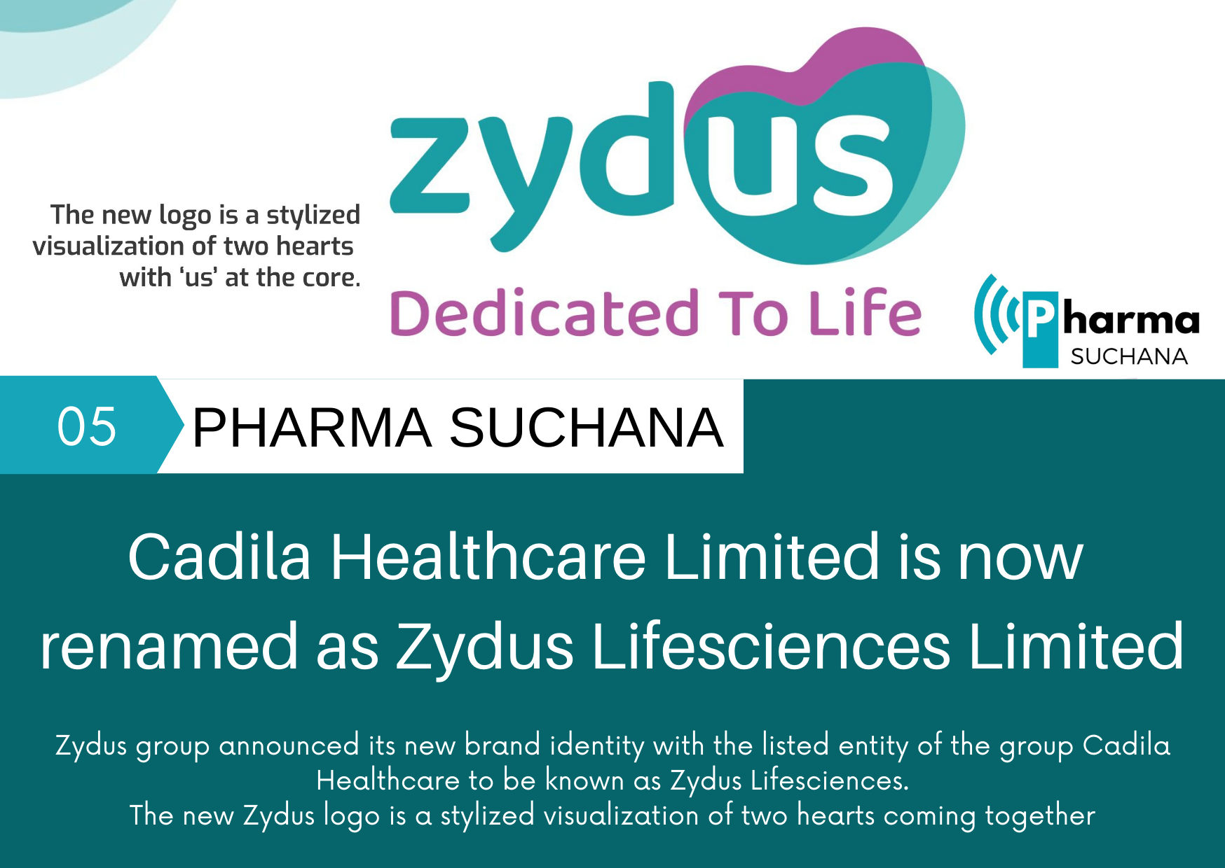 Zydus group announced its new brand identity- Cadila Healthcare to be known as Zydus Lifesciences.