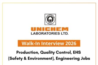 Unichem Laboratories Walk-In Interview 2026 for API Plant | Production, QC, EHS & Engineering Jobs in Bharuch