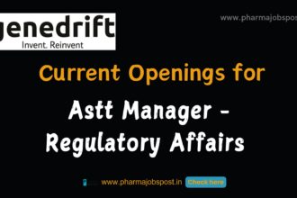 Genedrift Current Openings for Astt Manager – Regulatory Affairs