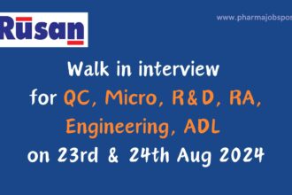 Walk-In Interview at Rusan Pharma for QC, Micro, R&D, RA, Engineering, ADL – 23rd & 24th Aug 2024