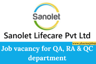 Sanolet Lifecare job vacancy for QA, RA & QC department