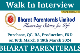Bharat Parenterals Walk In Interview for Purchase, QC, RA, Production, F&D on 16th March & 18th March 2024