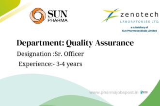 Zenotech (Sun Pharma) Hiring: Sr. Officer Quality Assurance Compliance Job in Hyderabad