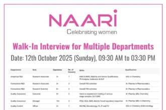 Naari Pharma Walk-In Drive 2025 | Hiring for R&D, QA, QC & Production at Dehradun on 12th Oct