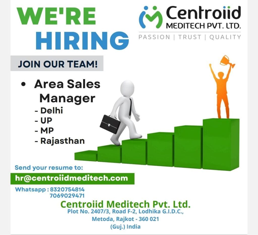 Centroiid Meditech hiring Area Sales Manager- Delhi/ MP/ UP/ Rajasthan – Apply Now
