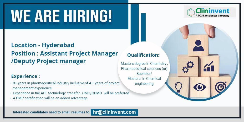 - Masters degree in Chemistry, Pharmaceutical Sciences (or) Bachelor/ Masters in Chemical engineering