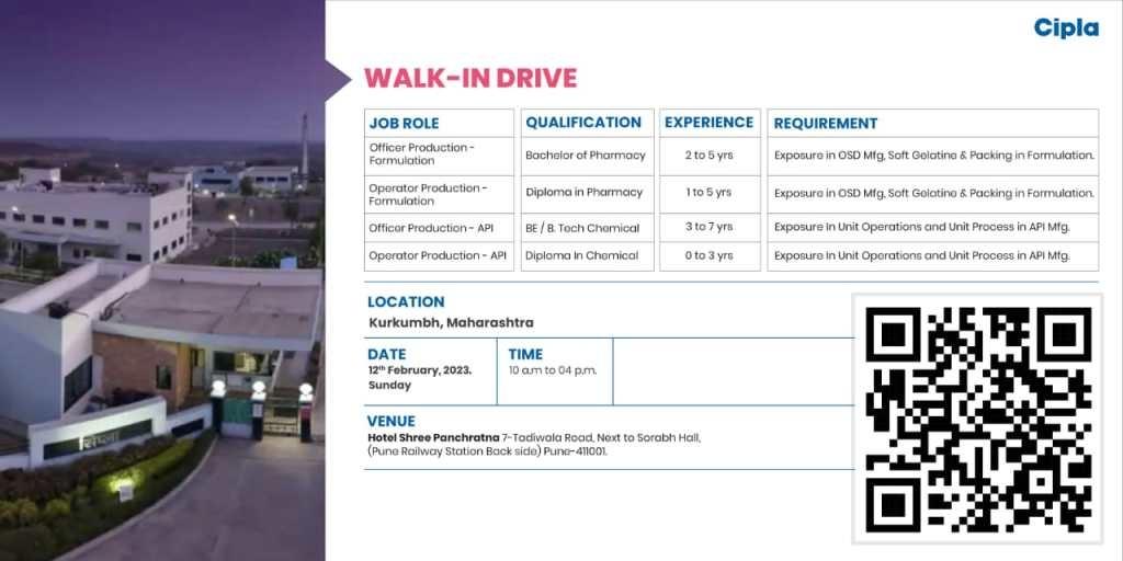 Cipla – Walk In Drive at Pune on 12 February, 2023