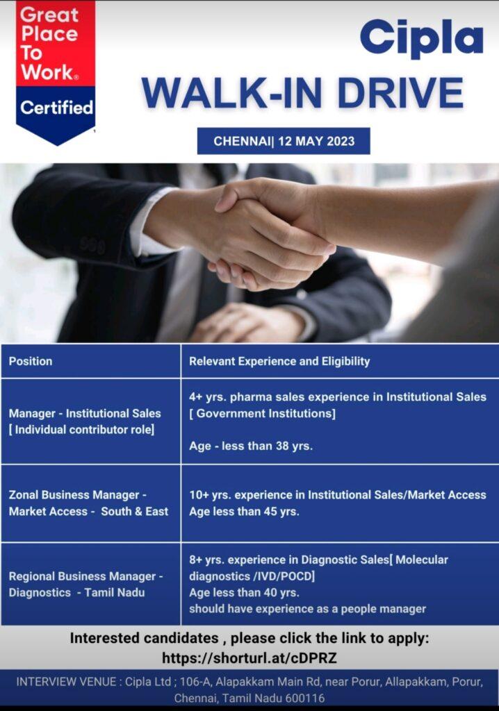 Cipla WALK-IN DRIVE ON 12 MAY 2023