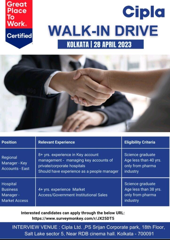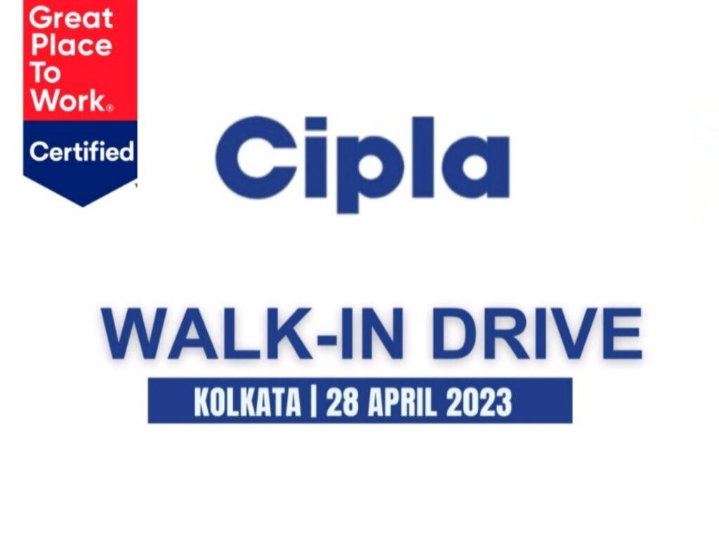 We are hiring @Cipla . Please attend the Walk-in drive on 28th April 2023 at Kolkata.