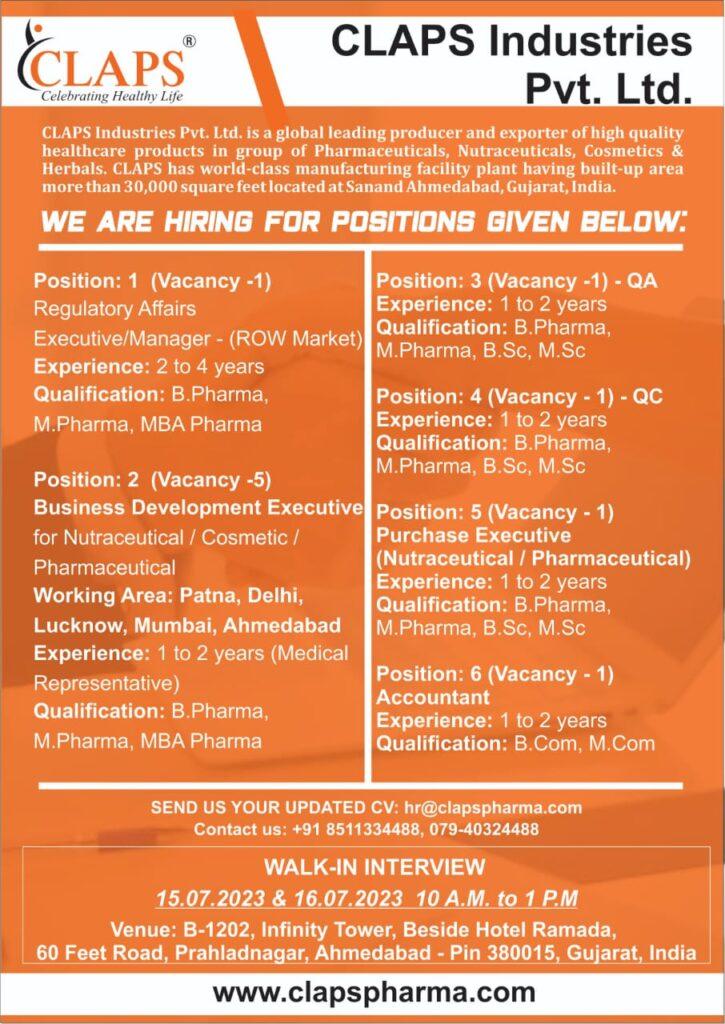 SEND US YOUR UPDATED CV: hr@clapspharma.com
